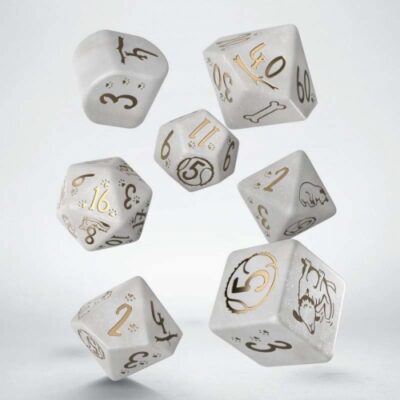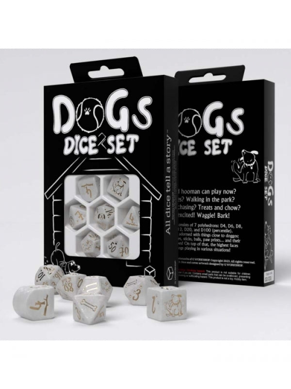 Un ladrido distinguido. ¡Echa un vistazo al juego de dados para perros: Este diseño muestra a los mejores amigos de los humanos en varias poses en las caras más altas.